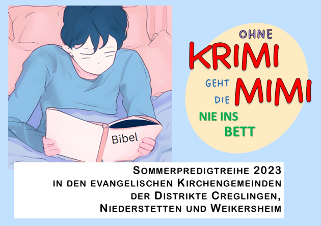 Die Sommerpredigtreihe 2023 hat das Thema 'Ohne Krimi geht die Mimi nie ins Bett'!